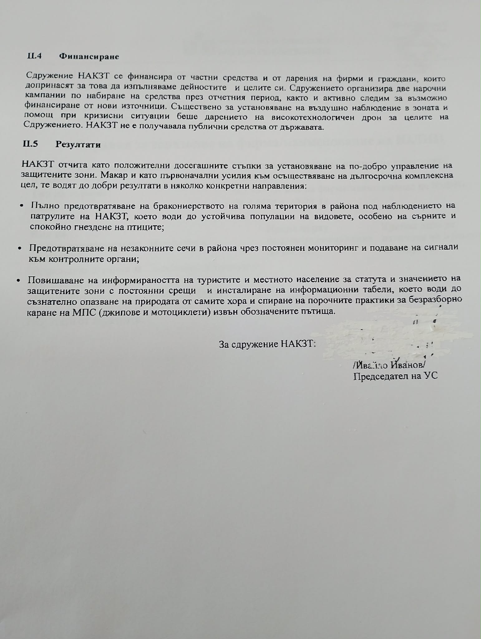 Доклад за дейността на сдружение "Национална агенция за контрол на защитените територии" за периода февруари 2022 - декември 2022