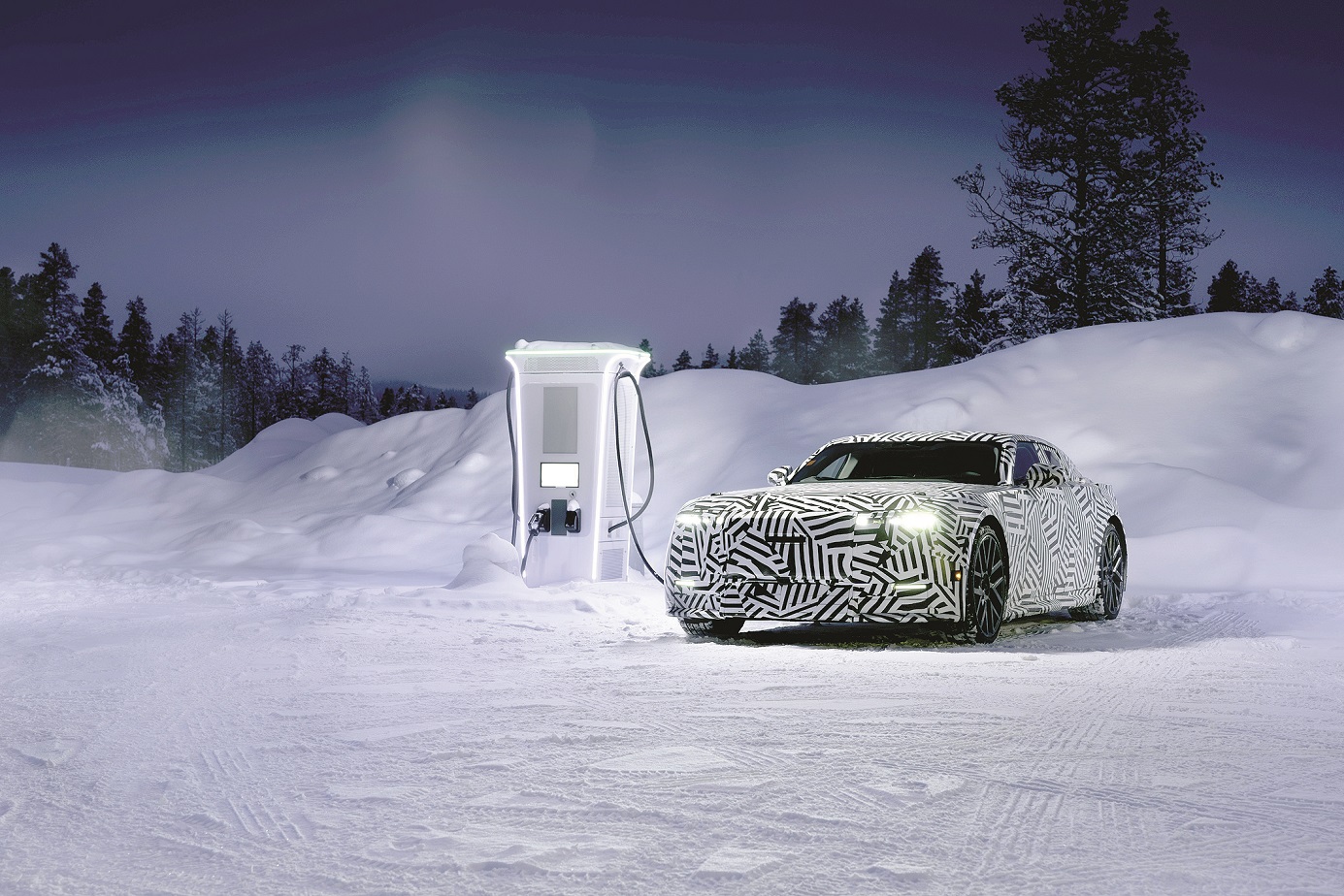 Един от тези автомобили се тества върху шведски лед в най-северните райони на Европа. Работата на инженерите е да направят оптимални фини настройки на различните режими на шофиране, да хармонизират електрическото задвижване и ходовата част, за да постигнат балансирано съотношение между динамика и комфорт.