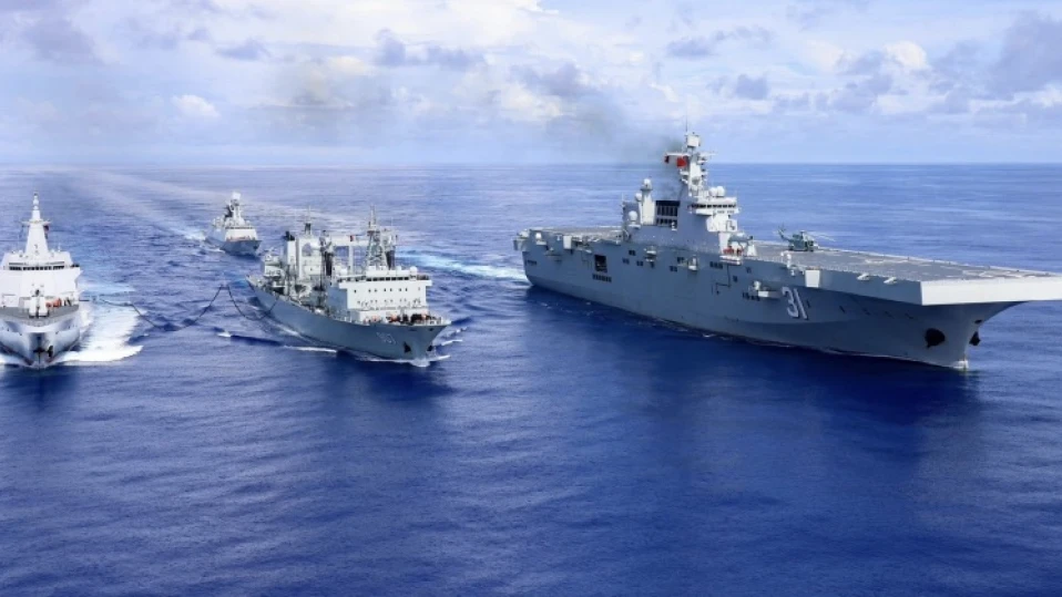 Военноморските сили на Китайската народна освободителна армия разположиха военноморска оперативна група, съставена от амфибиен кораб от клас Type 075 Hainan, който включва кораб за снабдяване от клас Type 903A Luomahu и разрушител от клас Type 055 Yan'an, заедно с поддържаща океанска фрегата от клас Type 054A Yueyang. Оперативната група проведе многопредметни морски учения, като корабите тип 055 и тип 075 са сред най-известните нови типове военни кораби в арсенала на Военноморските сили, които предоставят широк спектър от съвременни възможности за операции в открито море. Корабите от клас 075 са сред най-големите хеликоптерни носители в света, като им конкуренция правят само корабите от клас „Америка” на Военноморските сили на САЩ, и могат да разполагат до 30 самолета за широк спектър от задачи, от въздушни атаки до противоподводна война, пише Military Watch Magazine.