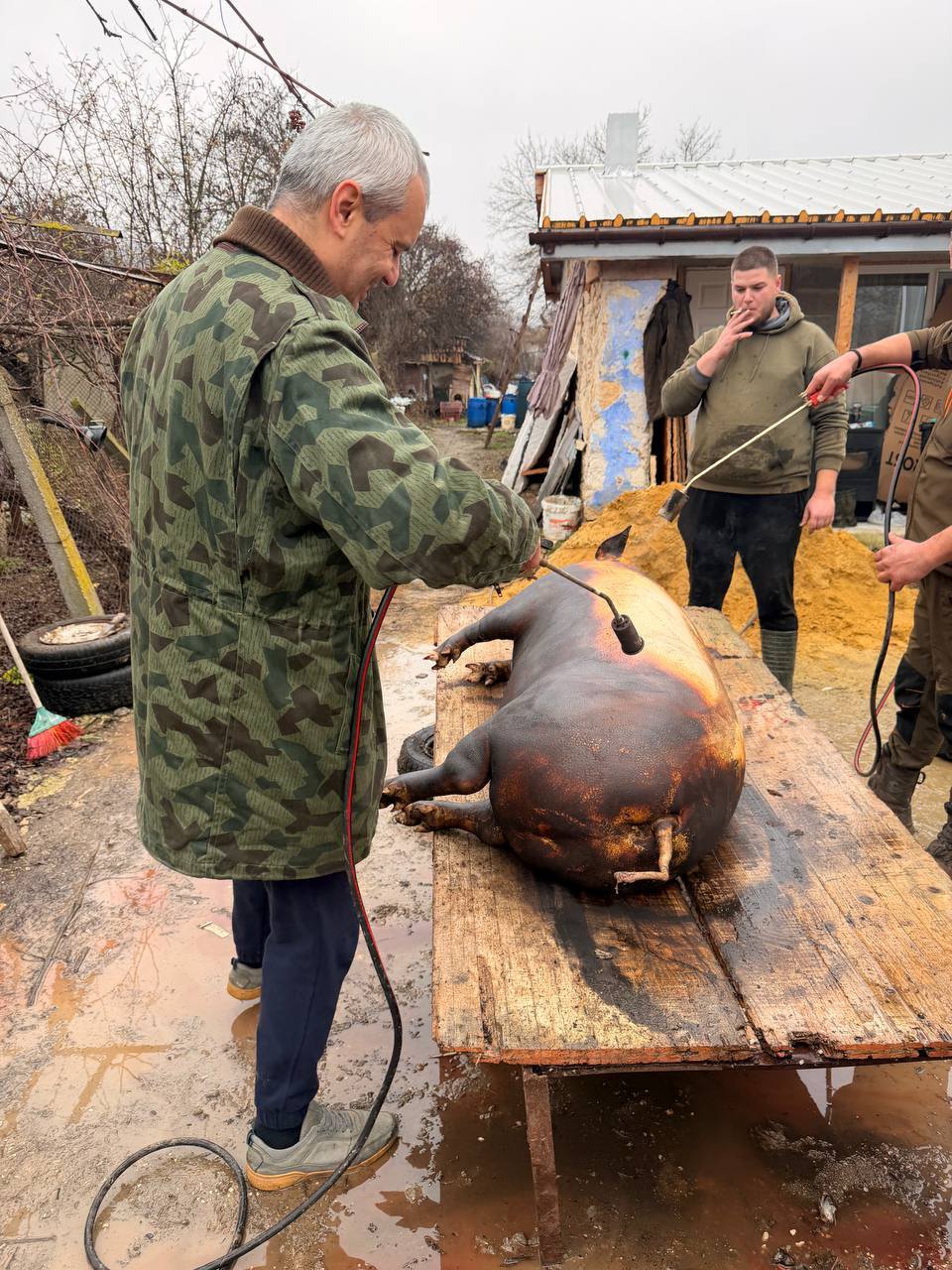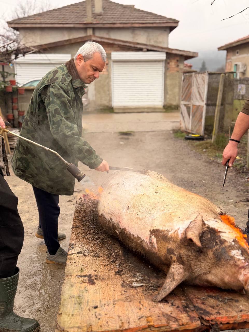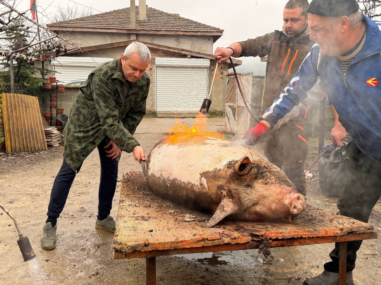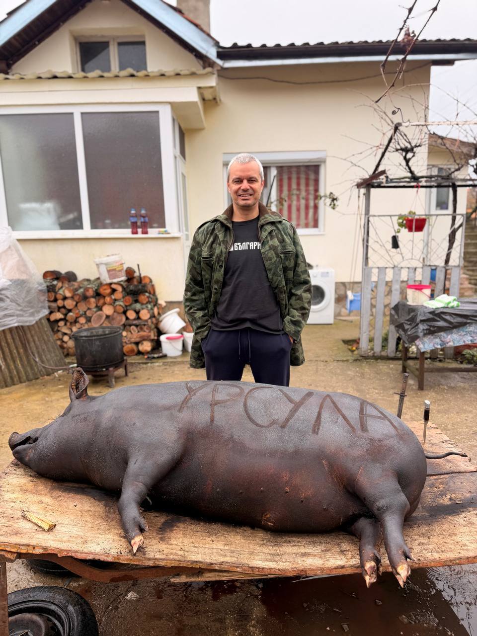 Лидерът на "Възраждане" спази традицията преди Коледа, като заедно с приятели заколиха прасе. Костадин Костадинов обяви, че то умишлено е било кръстено Урсула.