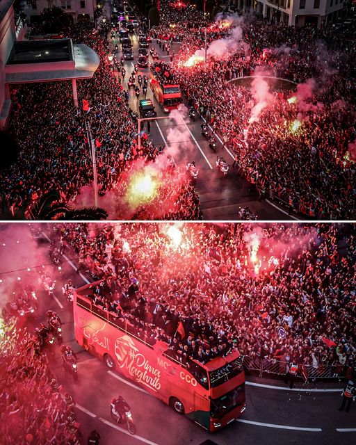 Футболните национали на Мароко се прибраха у дома след световното първенство в Катар и бяха посрещнати като герои в родината си, след като станаха първият африкански тим, който достига до полуфиналите на Мондиала и е четвърти в света. В столицата Рабат беше организиран специален парад, а десетки хиляди фенове излязоха по улиците на града в опит да се докоснат до футболистите и селекционера Уалид Реграги.
