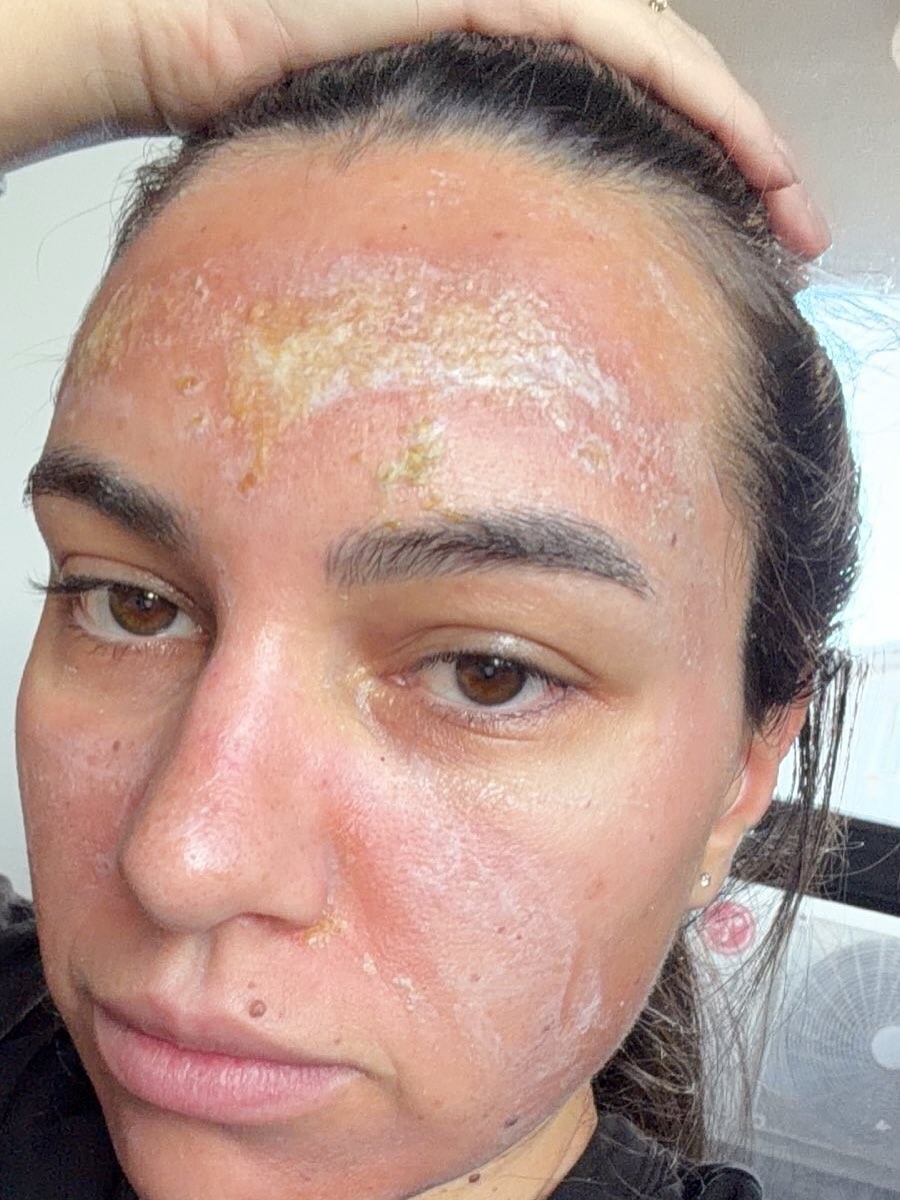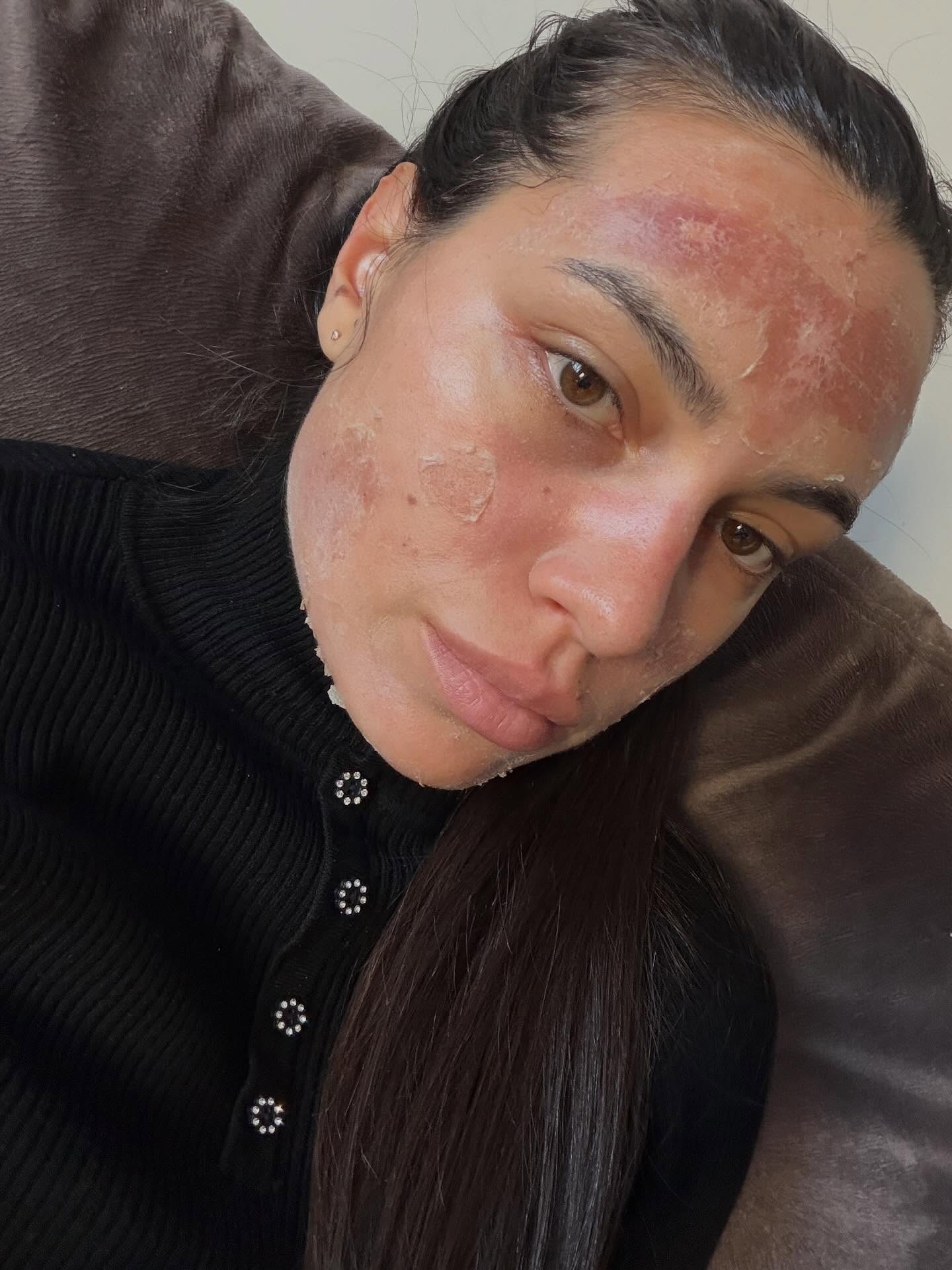 Младата жена реши да направи обществено достояние своя челен сблъсък с опасностите, които крият разкрасителните процедури. Дори невинни такива, пробутани като "билков пилинг".
