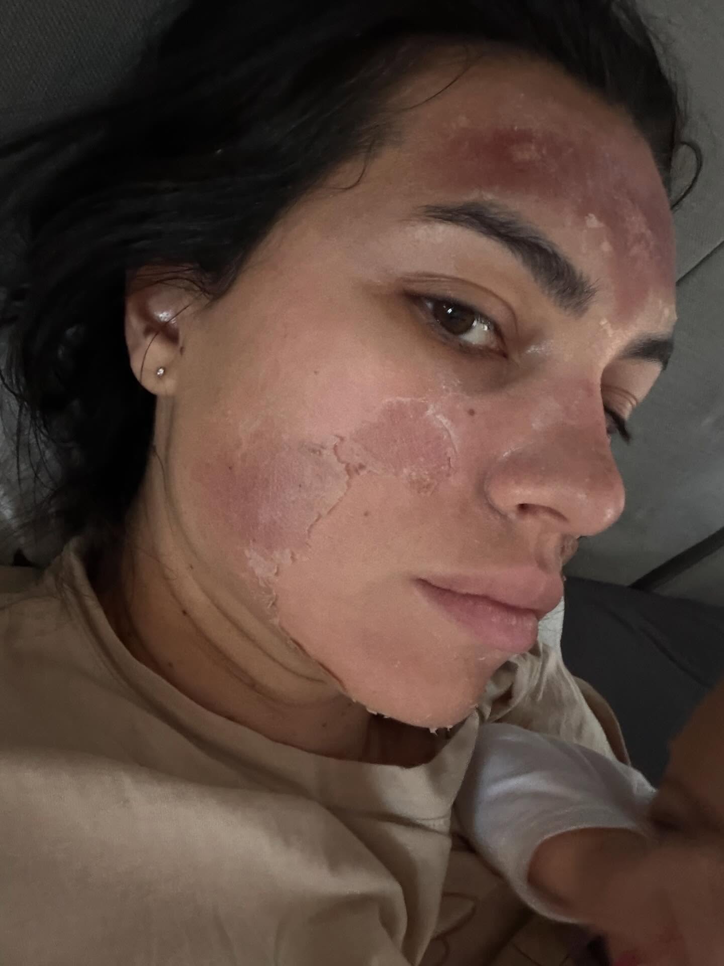"Вечерта след пилинга болките станаха непоносими, появи се гной и мехури. Потърсих я многократно, но ситуацията беше неглижирана с думите, че „това е нормално“. Състоянието ми се влоши и отидох в "Пирогов", където беше установено изгаряне втора степен. Втори лекар потвърди същото и започнах лечение", разказа в социалните мрежи пострадалата.