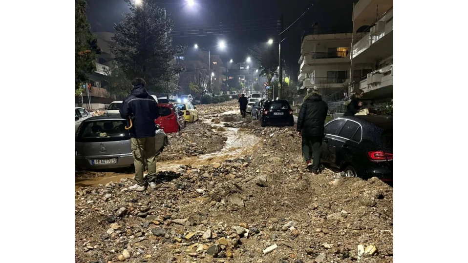 Двама души загинаха при тежки наводнения в Гърция. Едно от най-силно засегнатите места са предградията на Атина.