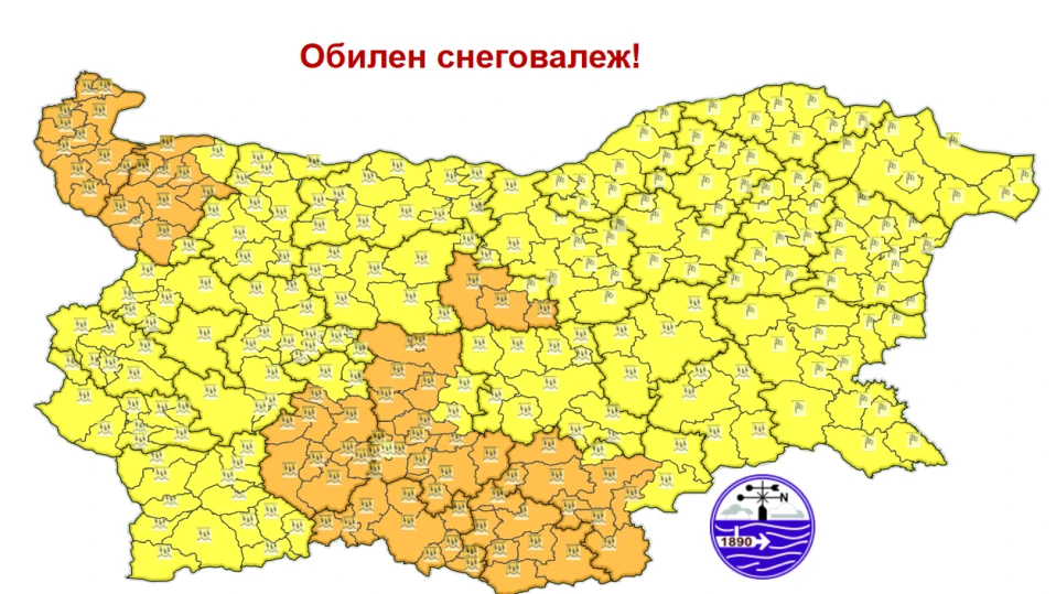 През следващото денонощие ще има повсеместни валежи. Тази нощ дъждът в северозападната част от страната, в Предбалкана и по високите полета на Западна България ще преминава в сняг. По планинските проходи на Стара планина ще има навявания и виелици.