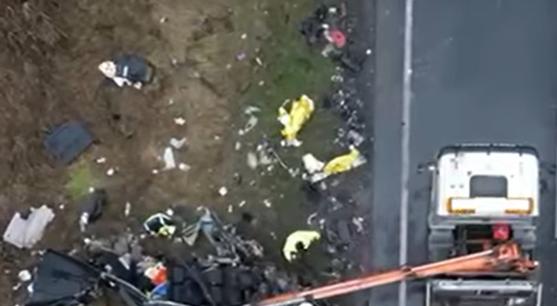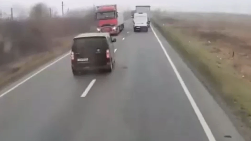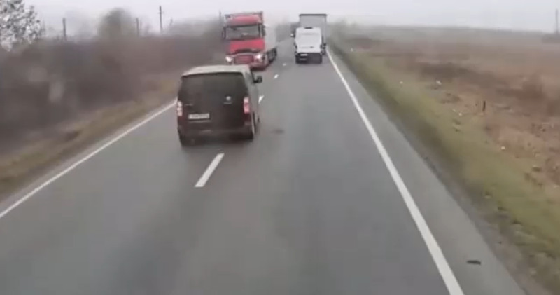 След като изпревари камион, микробусът даде десен сигнал, знак, че иска да се върне в лентата си, но веднага даде ляв сигнал и остана от другата страна на пътя, докато не се блъсна силно в камиона, без да спре.