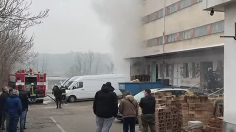 Пожар избухна в склад на перилни препарати и козметични продукти в една от индустриалните зони на Хасково.