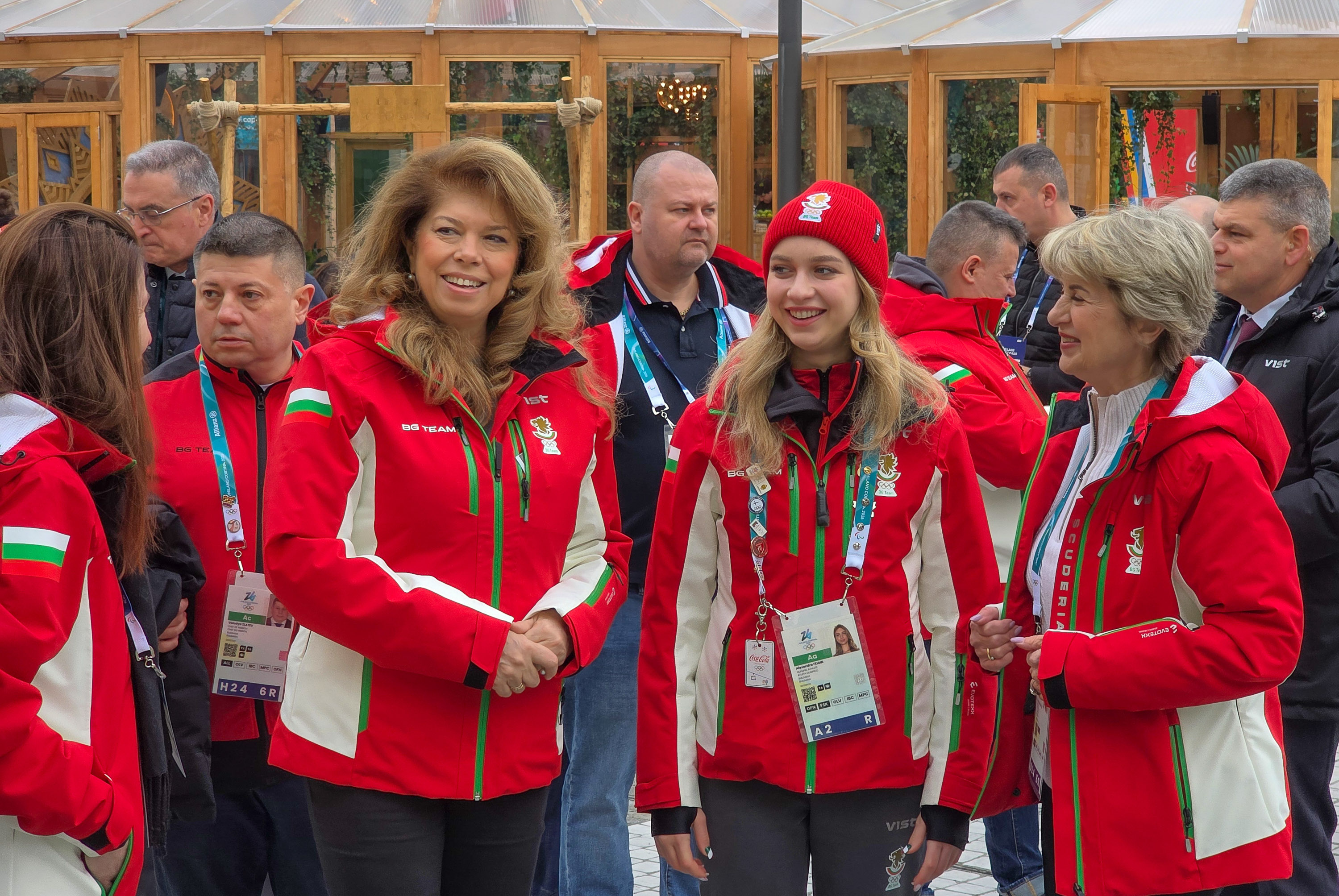 Президентът на България Илияна Йотова влезе в олимпийското село, където беше посрещната от председателя на Българския олимпийски комитет Весела Лечева, фигуристката Александра Фейгин и българската делегация в Милано.