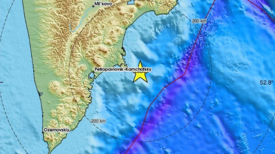 Земетресение с магнитуд 5,3 по скалата на Рихтер е регистрирано днес край източните брегове на Камчатка. Това показва справка на сайта на Европейския средиземноморски сеизмологичен център (EMSC).