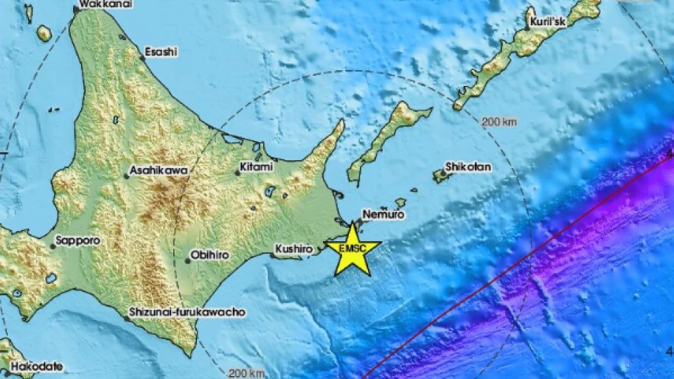 Земетресение с магнитуд 5,5 по скалата на Рихтер е регистрирано днес край остров Хокайдо, Япония. Това показва справка на сайта на Европейския средиземноморски сеизмологичен център (EMSC).