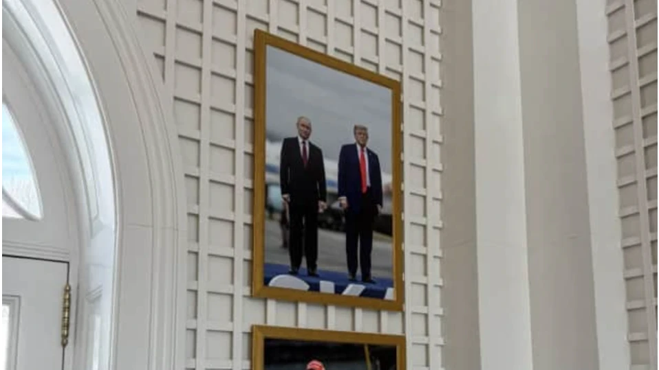 Американската администрация окачи съвместна снимка на американския президент Доналд Тръмп и държавния глава на Руската федерация Владимир Путин във фоайето на Белия дом.