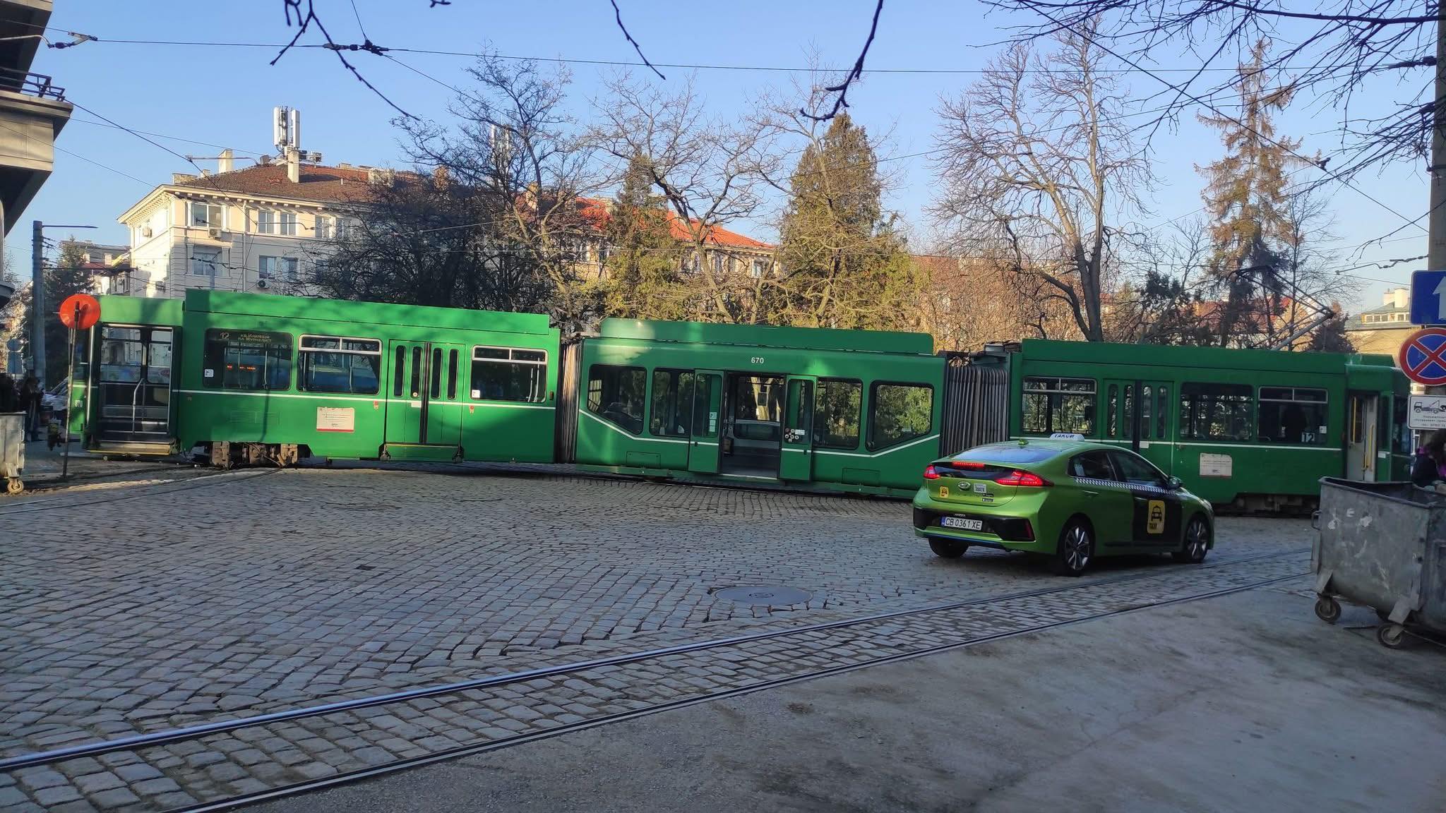 Трамвай дерайлира в центъра на столицата при площад "Журналист", съобщиха граждани в платформата за инциденти "Катастрофи в София" във Facebook.