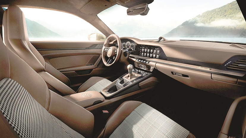 „Сигурен съм, че баща ми би харесал този специален модел 911 и боята е изцяло по вкуса му“, отбелязва Марк Порше. „С помощта на различни детайли ние включихме личните предпочитания на баща ми в този вълнуващ проект. Текстилната тапицерия на централната част на седалките е със същите шарки като неговото любимо сако.“ Външните части на седалките, вратите и таблото са облечени в тъмнокафява Club Leather кожа с цвят на трюфел.