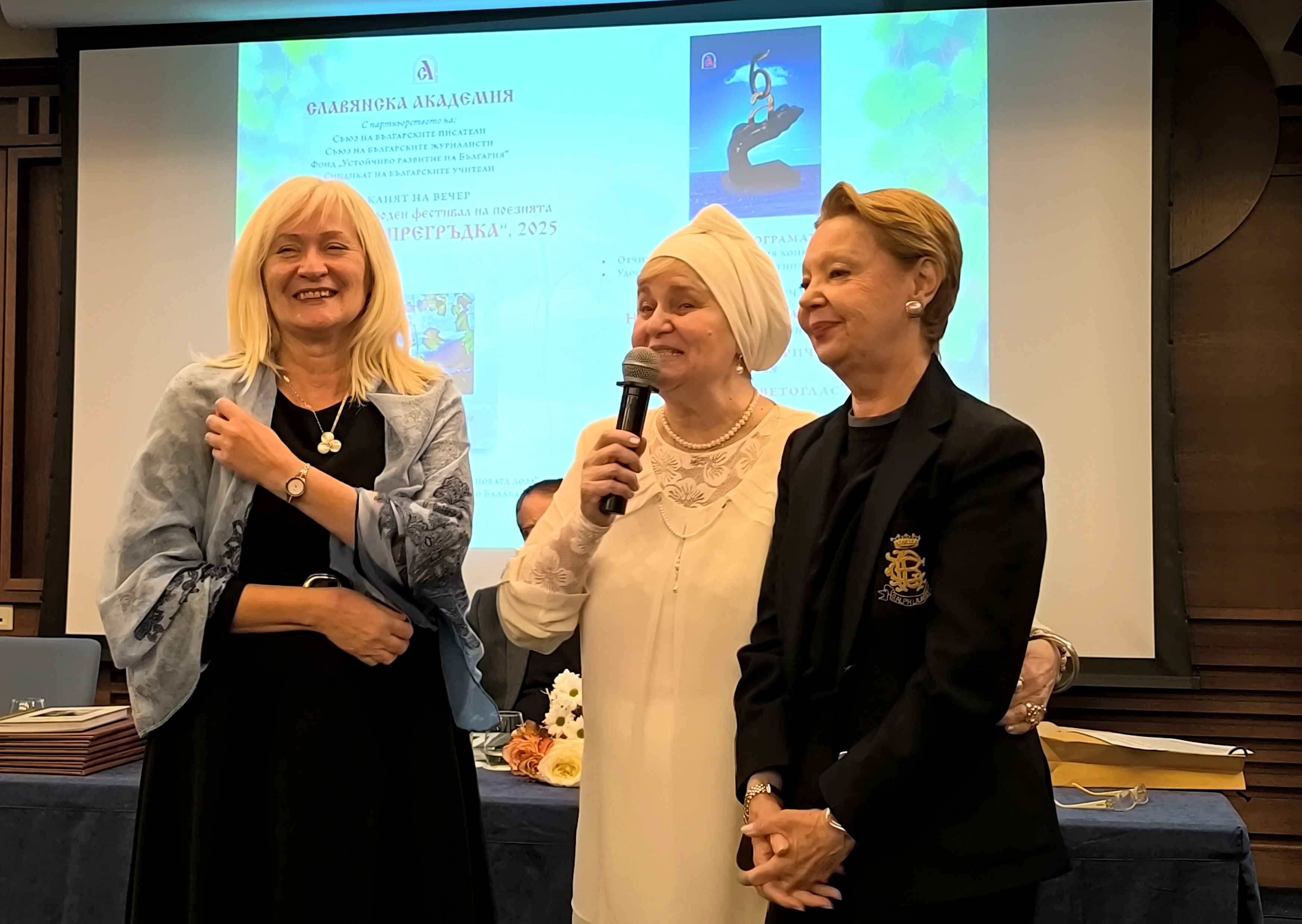В рамките на два дни (4 и 5 декември 2025 г.) на три сцени в София прозвучаха стихове на български, сръбски, руски и хърватски език, бяха представени две книги – издания на Славянска академия, чийто председател е поетесата Елка Няголова. Тя е идеен и творчески двигател на Международния фестивал на поезията „Славянска прегръдка“, който години наред събира във Варна през месец май поети от цялата славянска общност. В предишните издания в продължение на 5 дни в морската столица гостуваха и представяха своето творчество известни поети, издатели, главни редактори на вестници и списания, председатели на писателски съюзи от Полша, Чехия, Русия, Словакия, Литва, Латвия, Беларус, Украйна, Словения, Сърбия, Хърватия, Босна и Херцеговина, Северна Македония и други държави, в които има славянски общности. След Ковид кризата фестивалът промени формата си, като понастоящем се провежда в различни градове в страната и в различни периоди – на живо и онлайн, с акцент върху дадена национална литература.