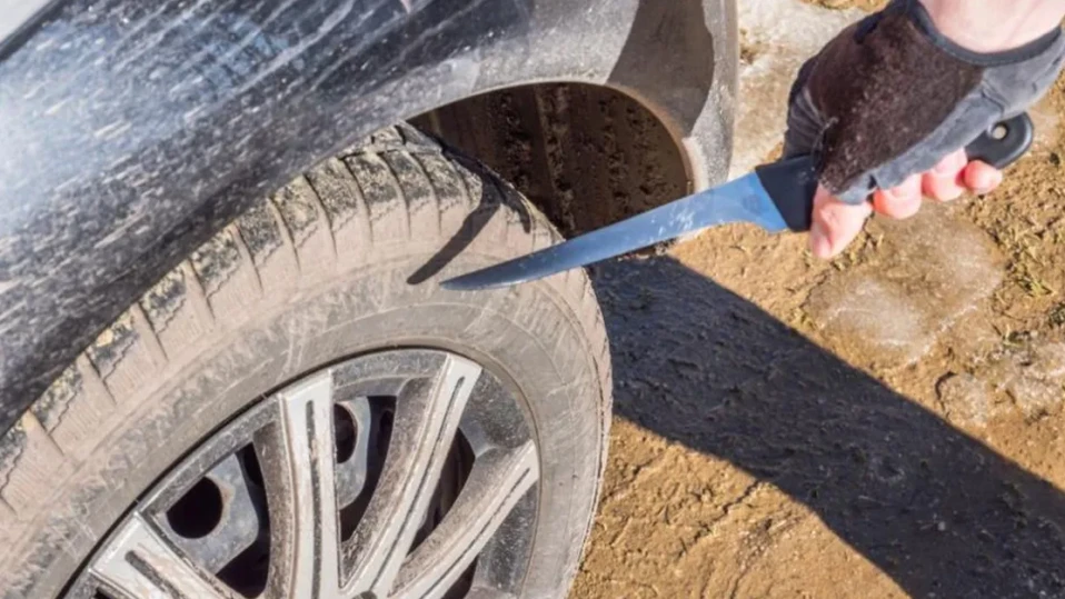 Случаят е от малките часове на събота, 14 декември. На кадри, разпространени в социалните мрежи, се вижда как мъж обикаля около паркирани автомобили с остър предмет в ръка. Посяга към една от гумите на кола, а после продължава по пътя си.