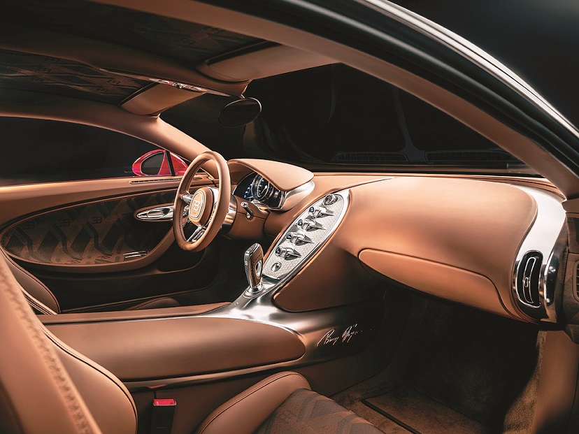 Доминиращ на арматурното табло е 41-милиметров часовник Audemars Piguet Royal Oak Tourbillon. Осмоъгълният часовник е разположен в “остров”, завършен с полиране, подобно на двигателя - техника, заимствана от обработката на оригиналните редови осемцилиндрови глави на Еторе Бугати. Часовникът разполага с гениален механизъм за самонавиване- гондола, която се върти по диагонална ос няколко пъти на час, задвижвана от самия автомобил без електрическа връзка.