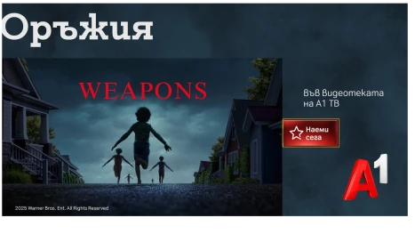 Видеотеката на А1 ТВ предлага разнообразие от български и чуждестранни заглавия във всички жанрове. Всеки месец се добавят нови предложения, които могат да се наемат за 48 часа и да се гледат неограничен брой пъти. Благодарение на вграден изкуствен интелект, платформата предлага персонализирани препоръки според вкуса на зрителя.