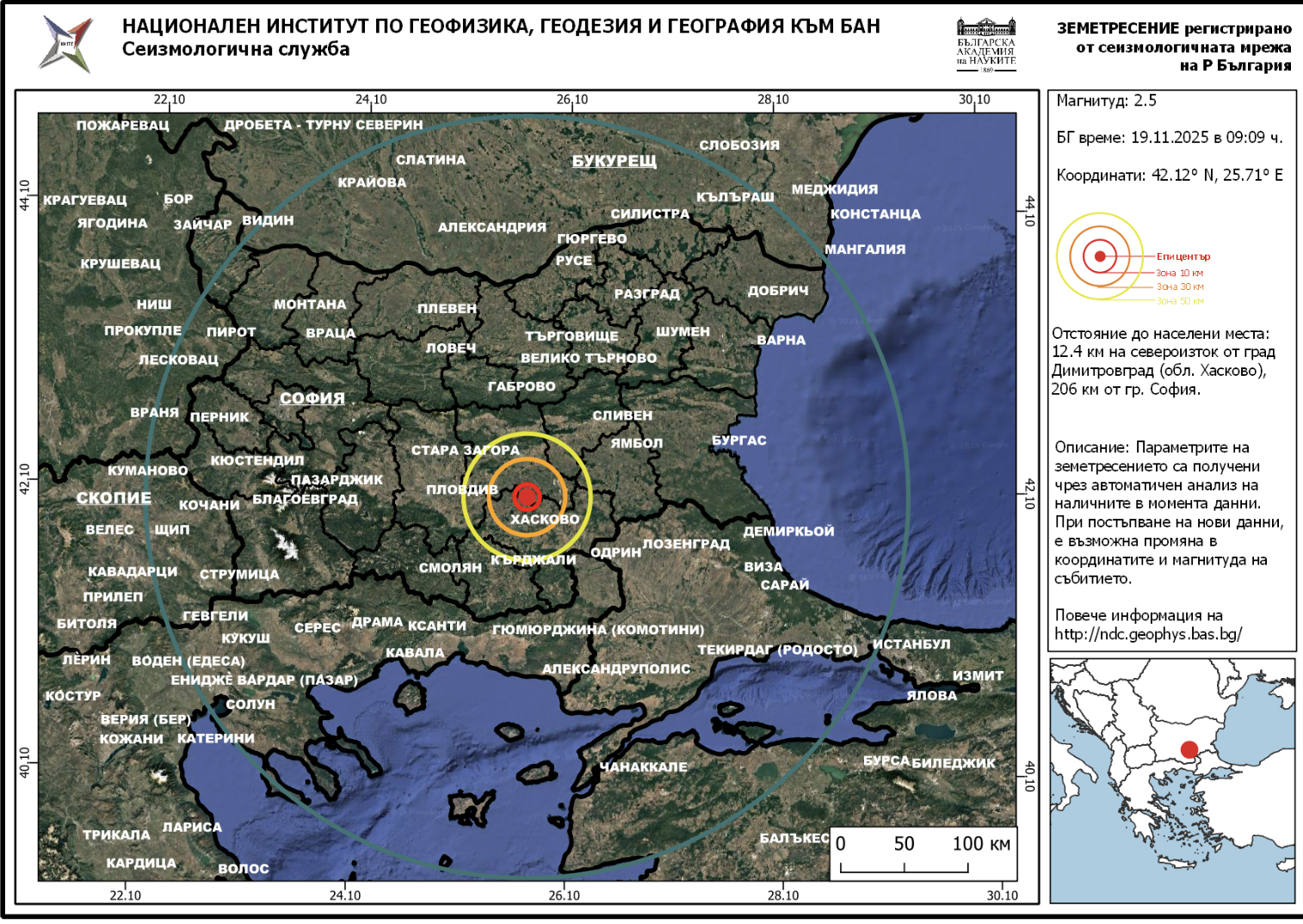 Земетресение с магнитуд 2,5 по скалата на Рихтер е регистрирано на територията на България. За това съобщиха от Геофизичния институт на БАН.