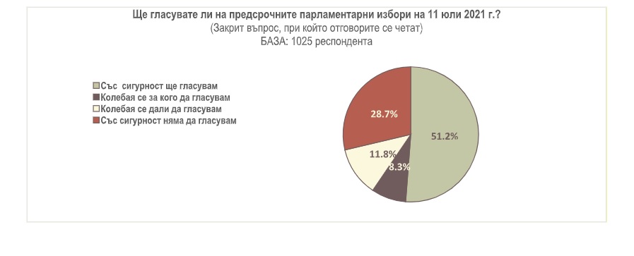 Седмица преди края на предизборната кампания за 46-то Народно събрание, 51.2% от интервюираните в националното проучване на социологическа агенция НАСОКА заявяват, че със сигурност ще гласуват на предсрочните избори на 11 юли 2021 г.