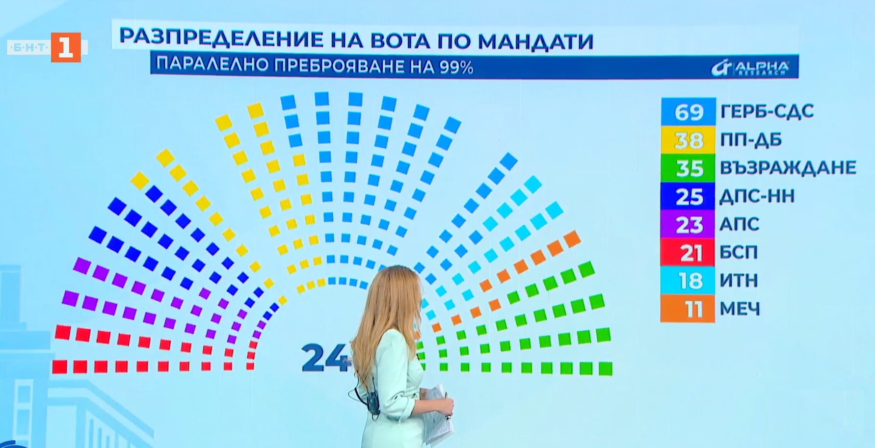 Осем формации ще влязат в 51-ото Народно събрание, показват данни на "Алфа Рисърч", при 99% паралелно преброяване.