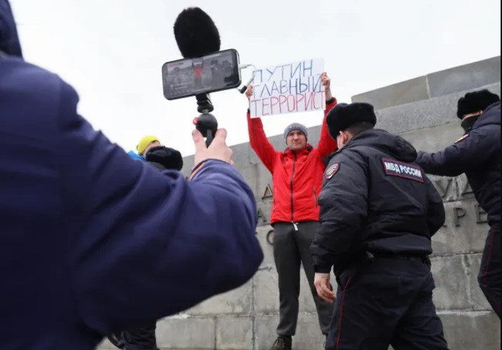 Близо 1800 души са задържани от властите в Русия заради участие в протестни акции срещу инвазията в Украйна, съобщават руски опозиционни медии.