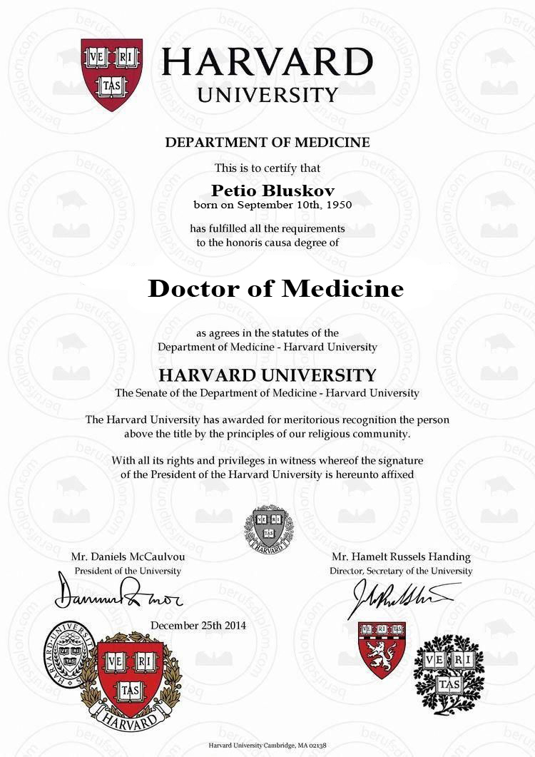 Както се вижда от факсимилето на харвардската диплома, той е "доктор по медицина".