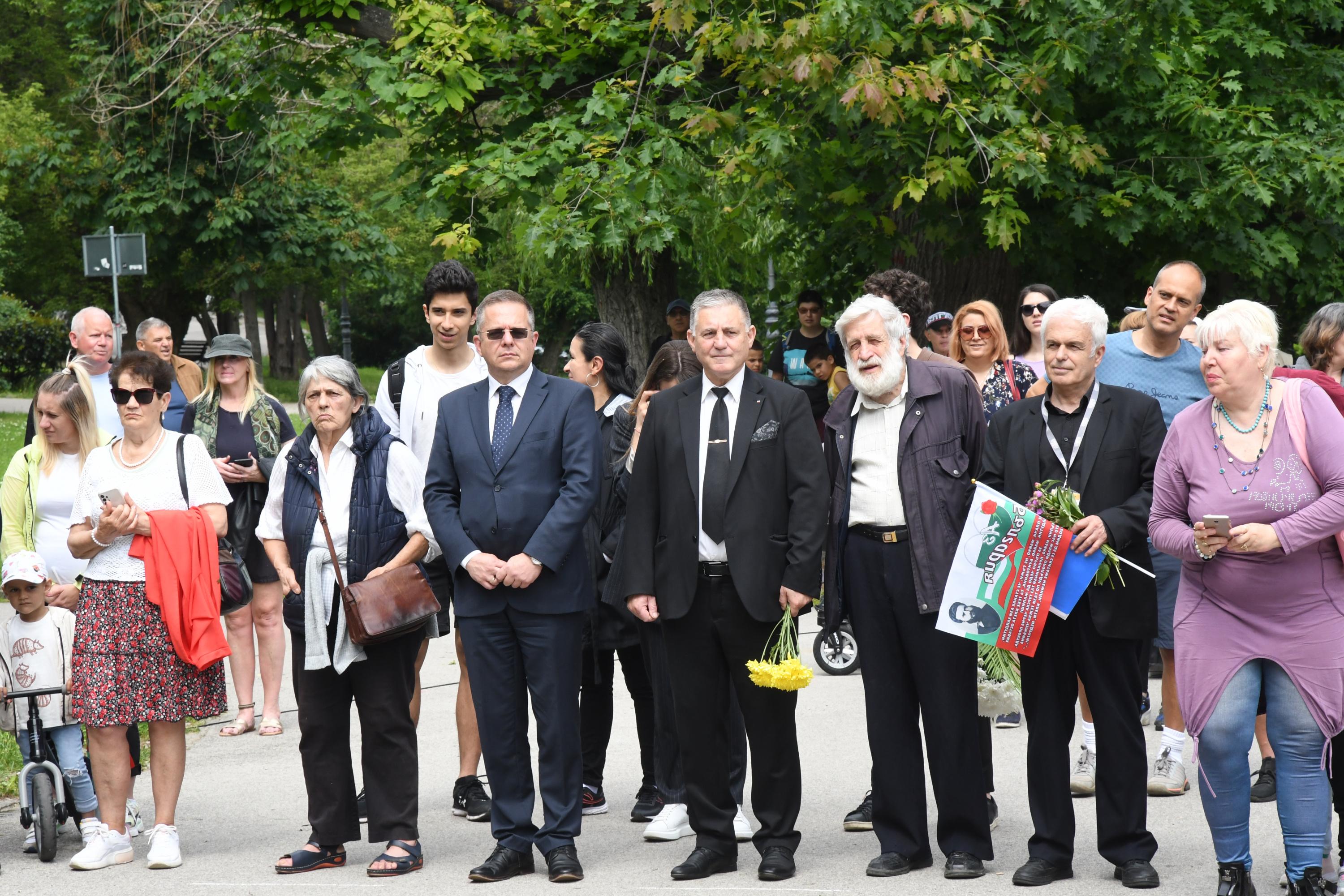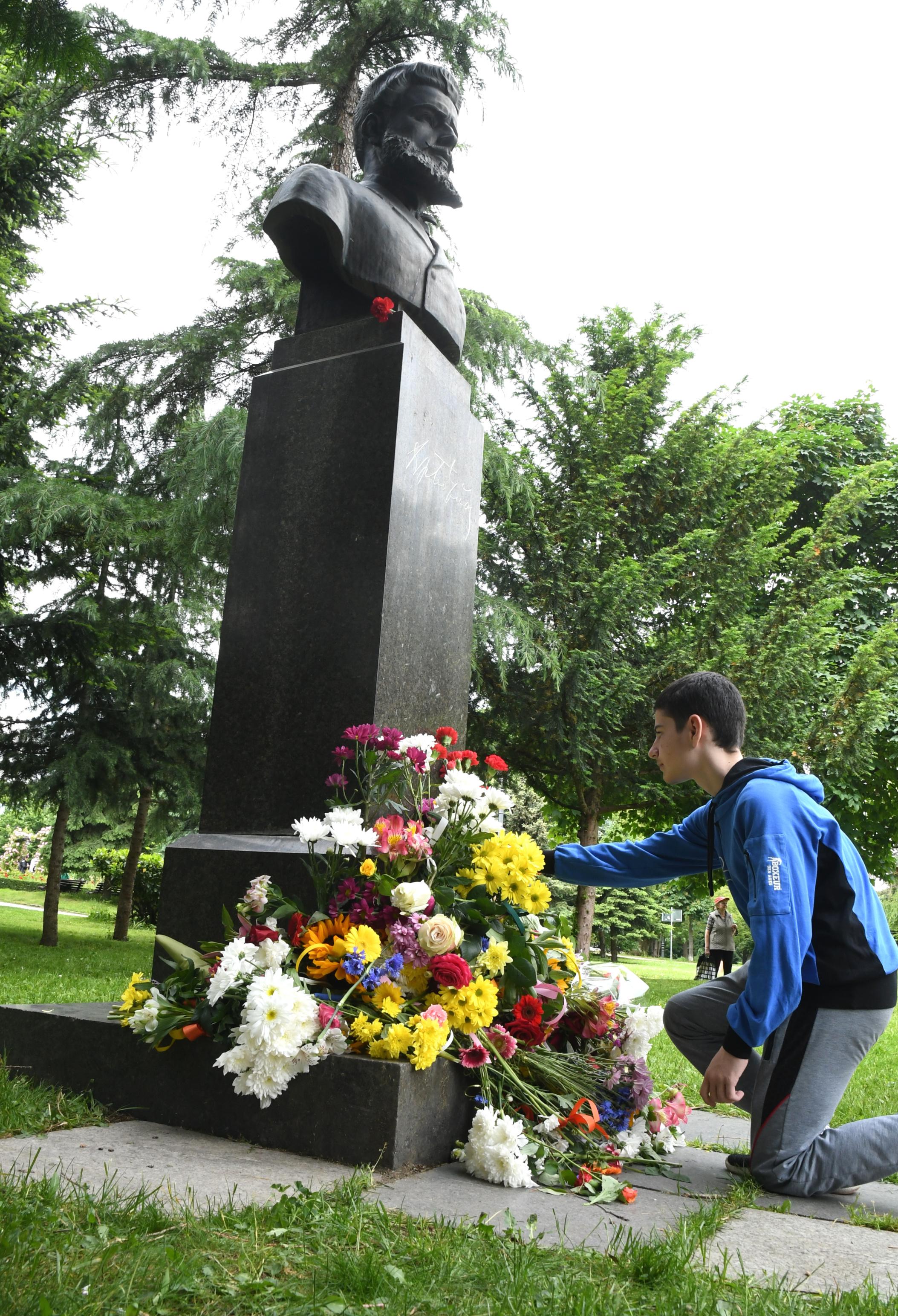 Пред бюст-паметника на Христо Ботев в Борисовата градина се провежда тържествена церемония.