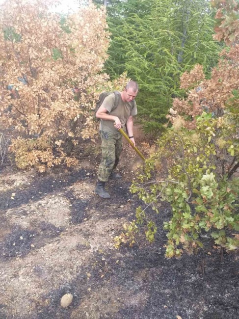 В действията по окончателно ликвидиране на огнищата на пожара участват 48 военнослужещи от зенитно-ракетен дивизион, 3-и механизиран батальон и рота от Служба „Военна полиция“ с 9 единици техника.