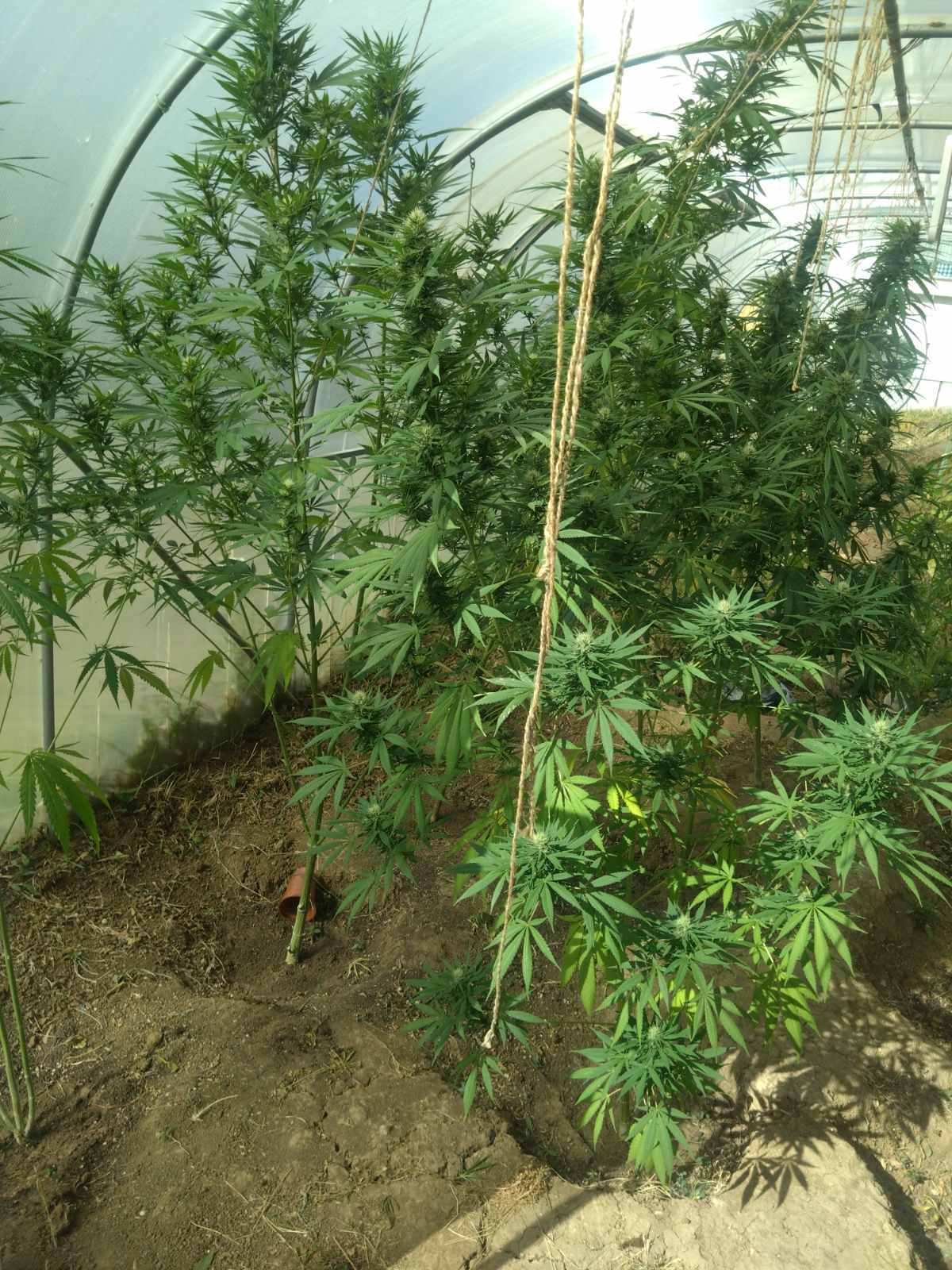 В парник до къщата, измежду засадените вътре зеленчуци, криминалистите открили 9 растения от рода на конопа, някои достигнали височина над 2 метра.