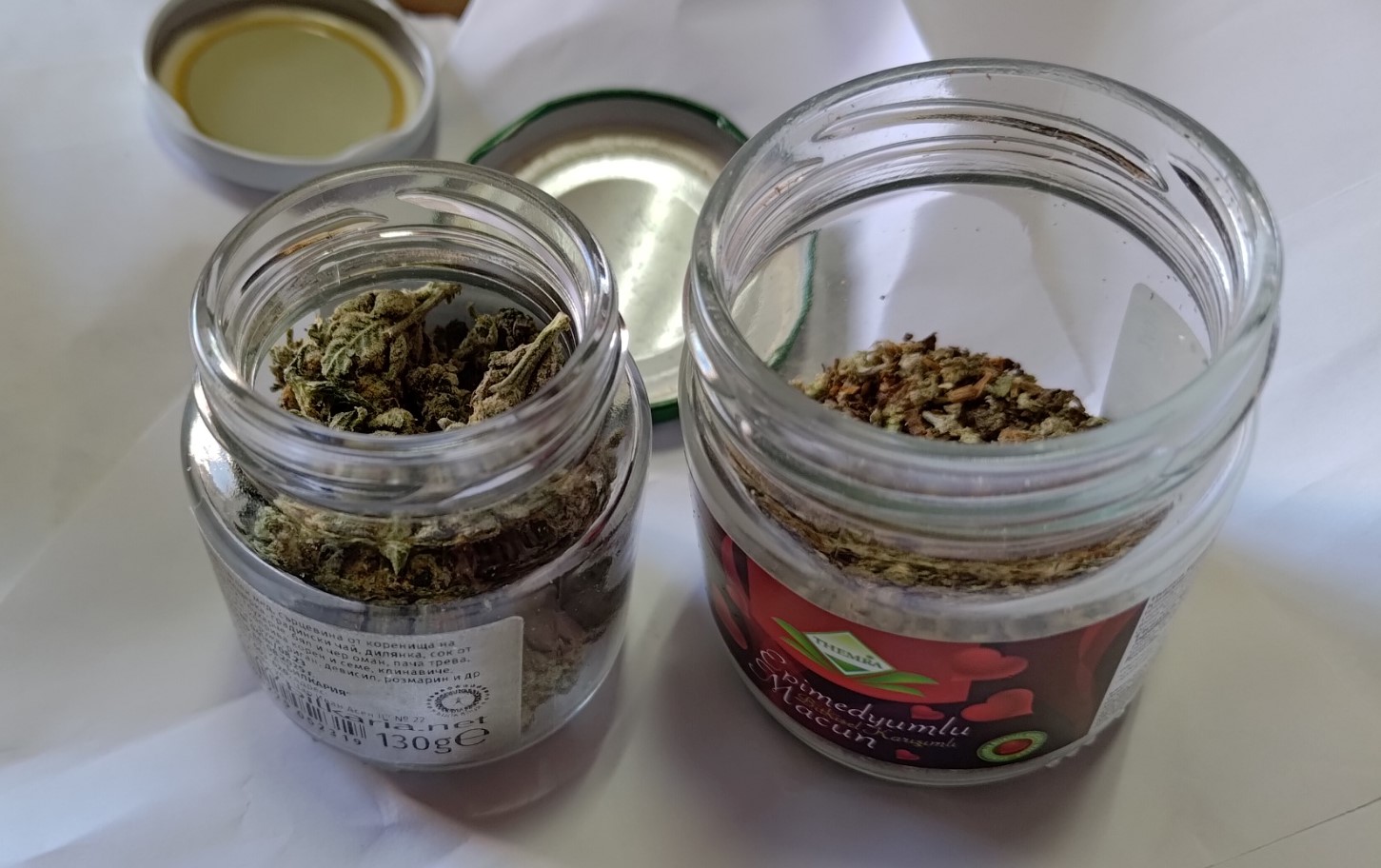 Претърсили частен имот в с. Чавдар, откъдето иззели два буркана със суха зелена тревиста маса и метална кутия с осем свивки с идентично съдържание.