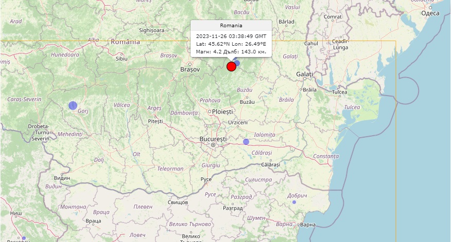 Земетресение с магнитуд 4,2 е регистрирано тази сутрин в силно сеизмичния район Вранча, Румъния, съобщават от Националният институт по геофизика, геодезия и география към БАН.