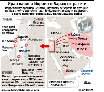 Техеран засипа еврейската държава с над 180 ракети
