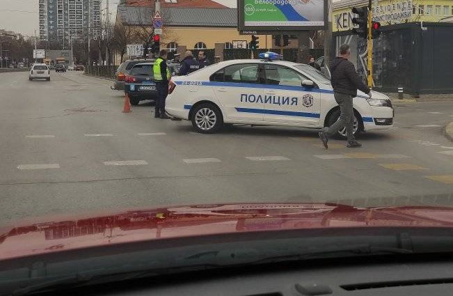 Катастрофа на кръстовището на бул. "Димитър Петков" и бул. "Сливница". Две коли са се ударили, като едната е учебен автомобил.