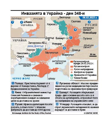 Войната се приближава към преломен момент преди първата си годишнина, като украинските сили вече не отбелязват напредък, какъвто имаха през втората половина на 2022 г., а Русия настъпва със стотиците хиляди мобилизирани запасняци, пише Ройтерс. Агенцията посочва, че Киев планира собствена контраофанзива, но все още очаква обещаните западни танкове и бойни машини на пехотата.