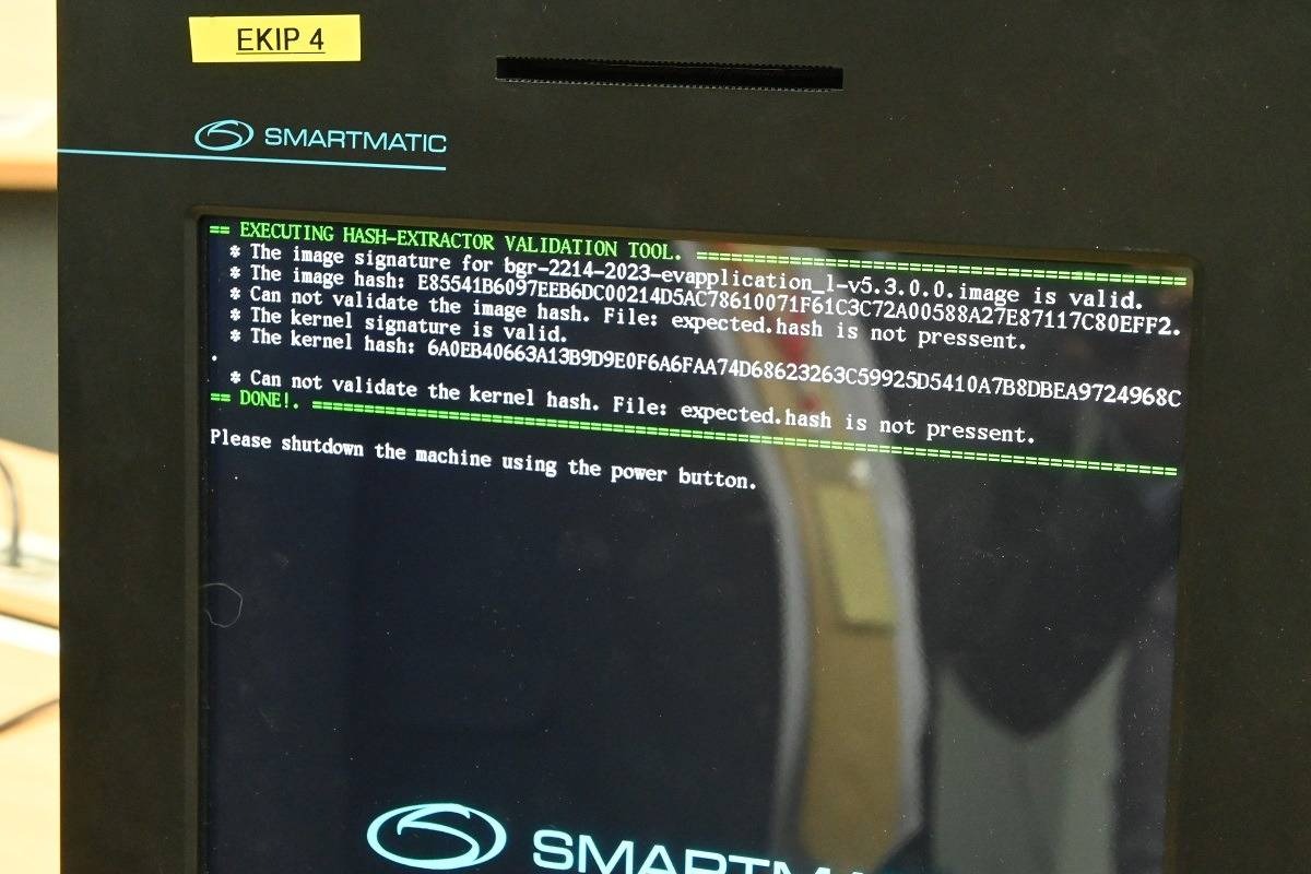 Контролната сума на ядрото на операционната система на техническите устройства за машинно гласуване е: 6A 0E B4 06 63 A1 3B 9D 9E 0F 6A 6F AA 74 D6 86 23 26 3C 59 92 5D 54 10 A7 B8 DB EA 97 24 96 8C.