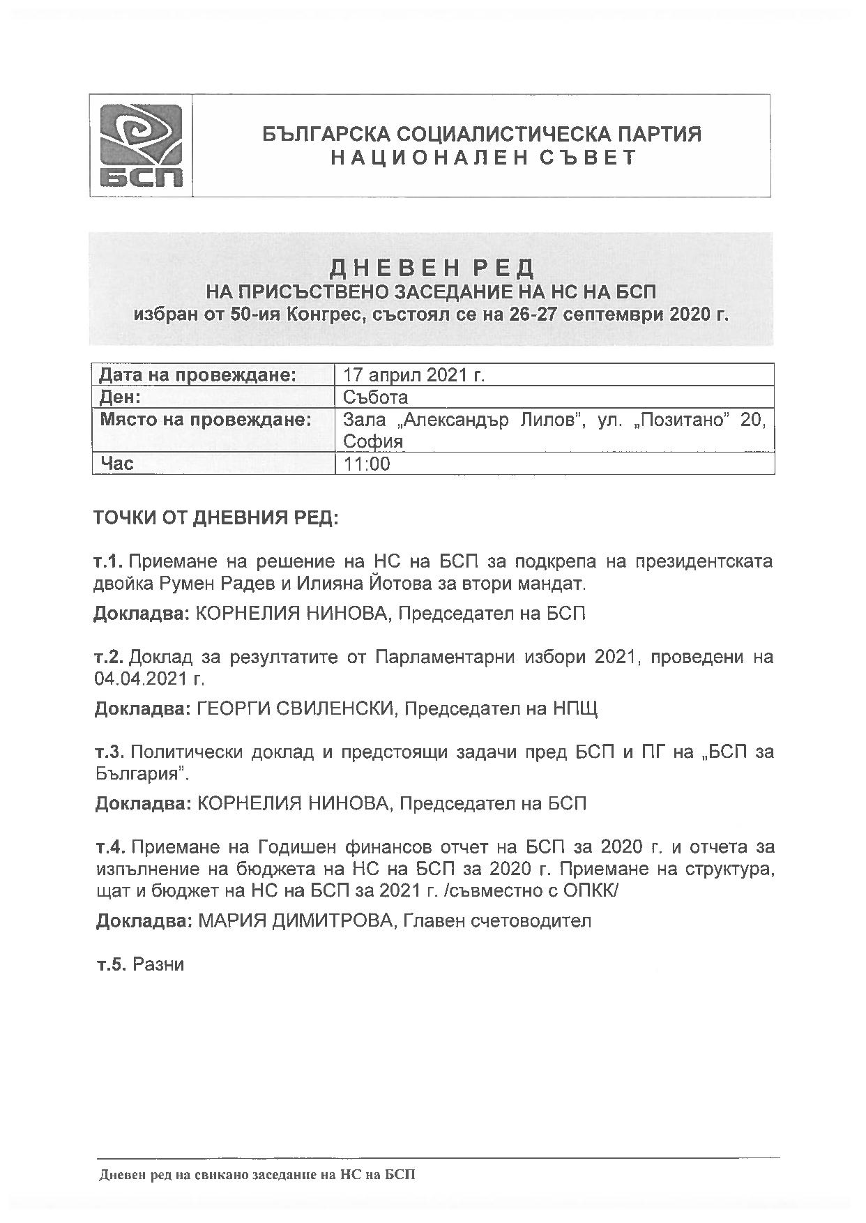 Вижте и останалите точки на пленума на социалистите тази събота: