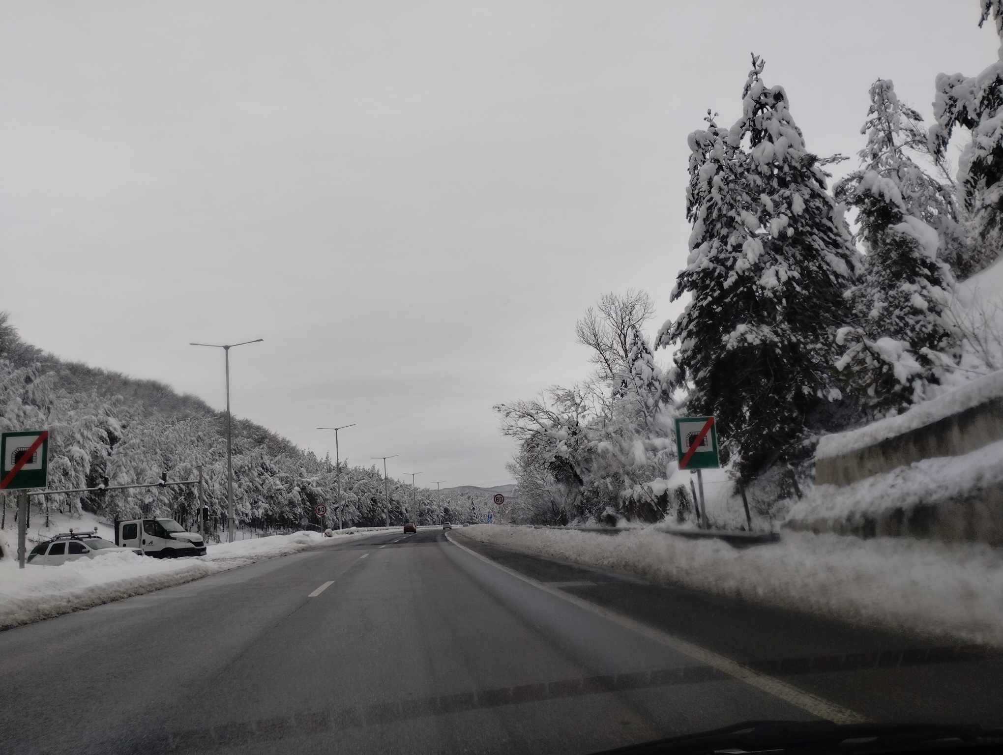 Ако пътувате от Бургас, Пловдив или Пазарджик, около пет километра преди тунела навън е бяла приказка и със снежна покривка отляво и отдясно от аутобана, но това прави още по-трудна адаптацията на зрението на водачите при влизане в тъмния тунел.