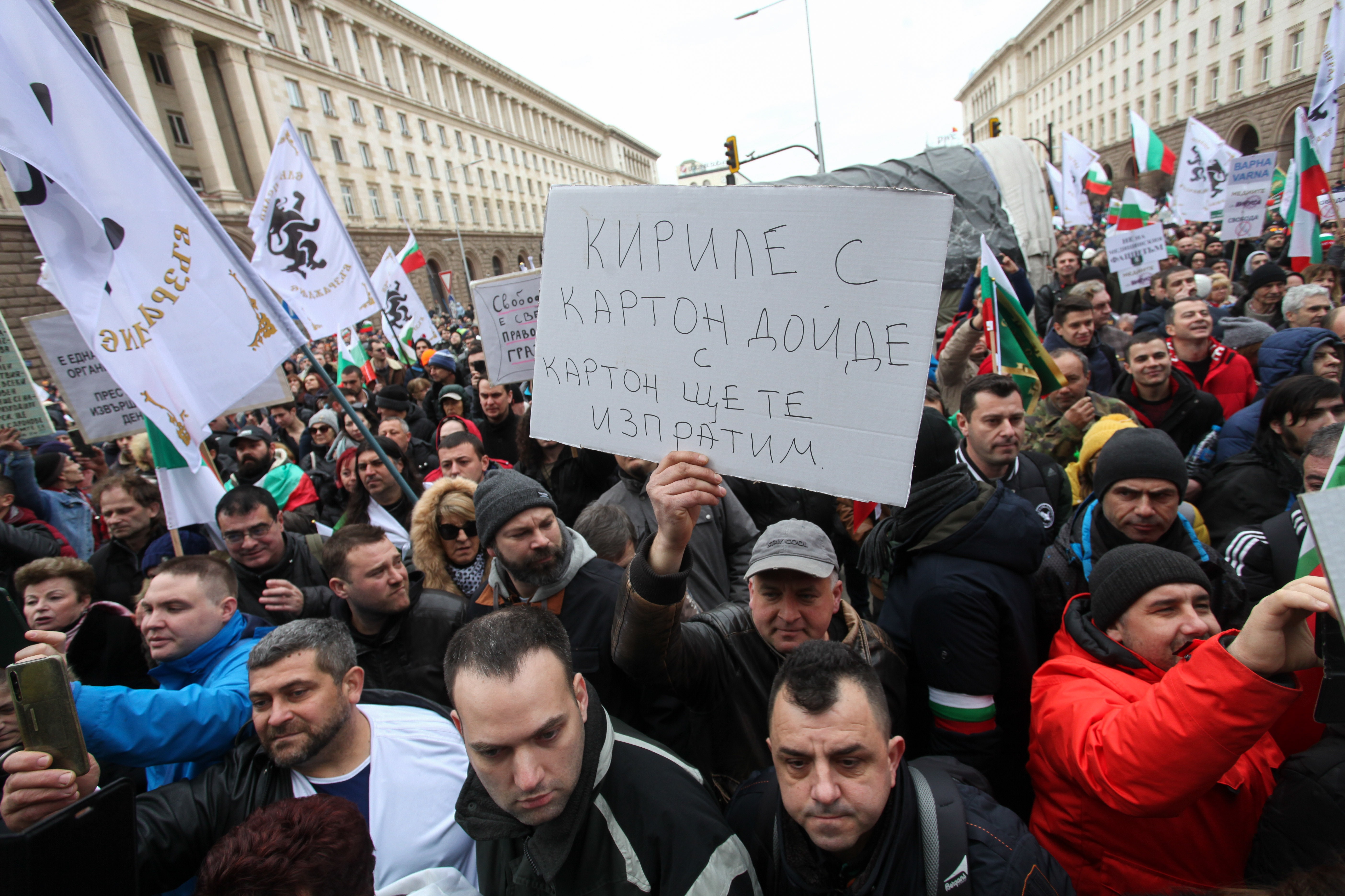 С викове “Оставка” и “Киро вън” протестиращите пред Министерски съвет посрещнаха премиера Кирил Петков, който реши да разговаря с тях. Гардове от НСО направиха плътен кордон, за да пазят Петков от недоволството.