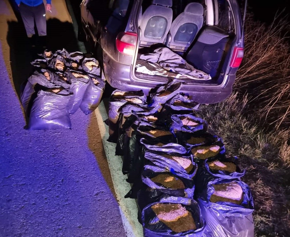 В колата са намерени 30 броя полиетиленови чували, съдържащи нарязан тютюн без акцизен бандерол.