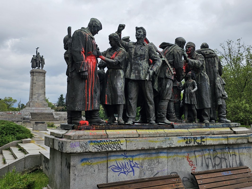 Паметникът на Съветската армия в центъра на София отново осъмна изцапан с боя, съобщи "Булфото".