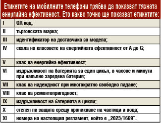 Освен индекс за енергийна ефективност, върху етикетите на смартфони и таблети ще трябва да има още два индекса - за устойчивост на случайни изпускания, тоест за надеждност при многократно свободно падане, както и за възможност да бъдат ремонтирани.