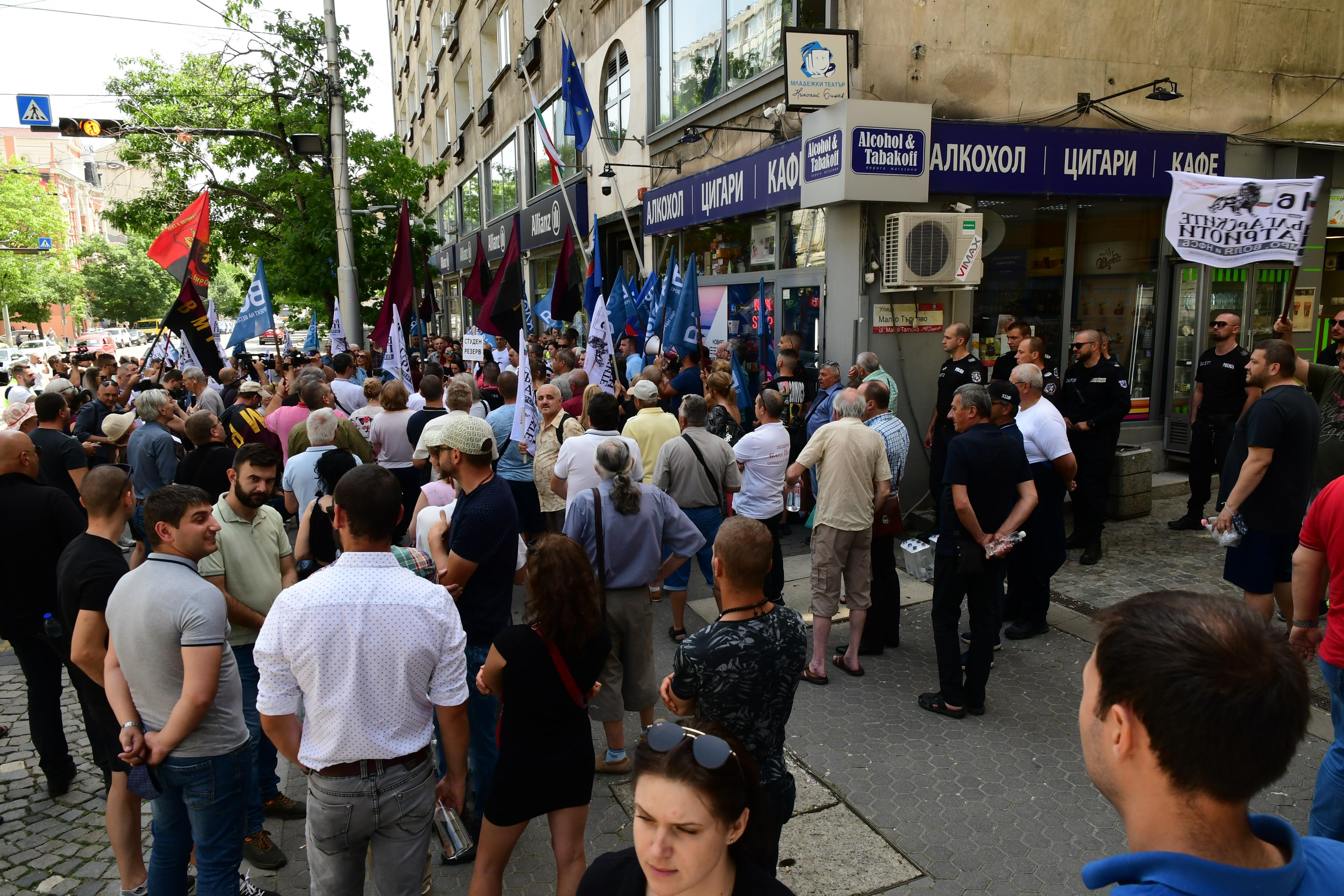 На събитието присъстват кандидати за народни представители от коалицията и стотици граждани. Те носят знамена на трите партии от коалицията, както и плакати, на които пише: "Оставка, КЕВР" и КЕВР - слуги на монополите".