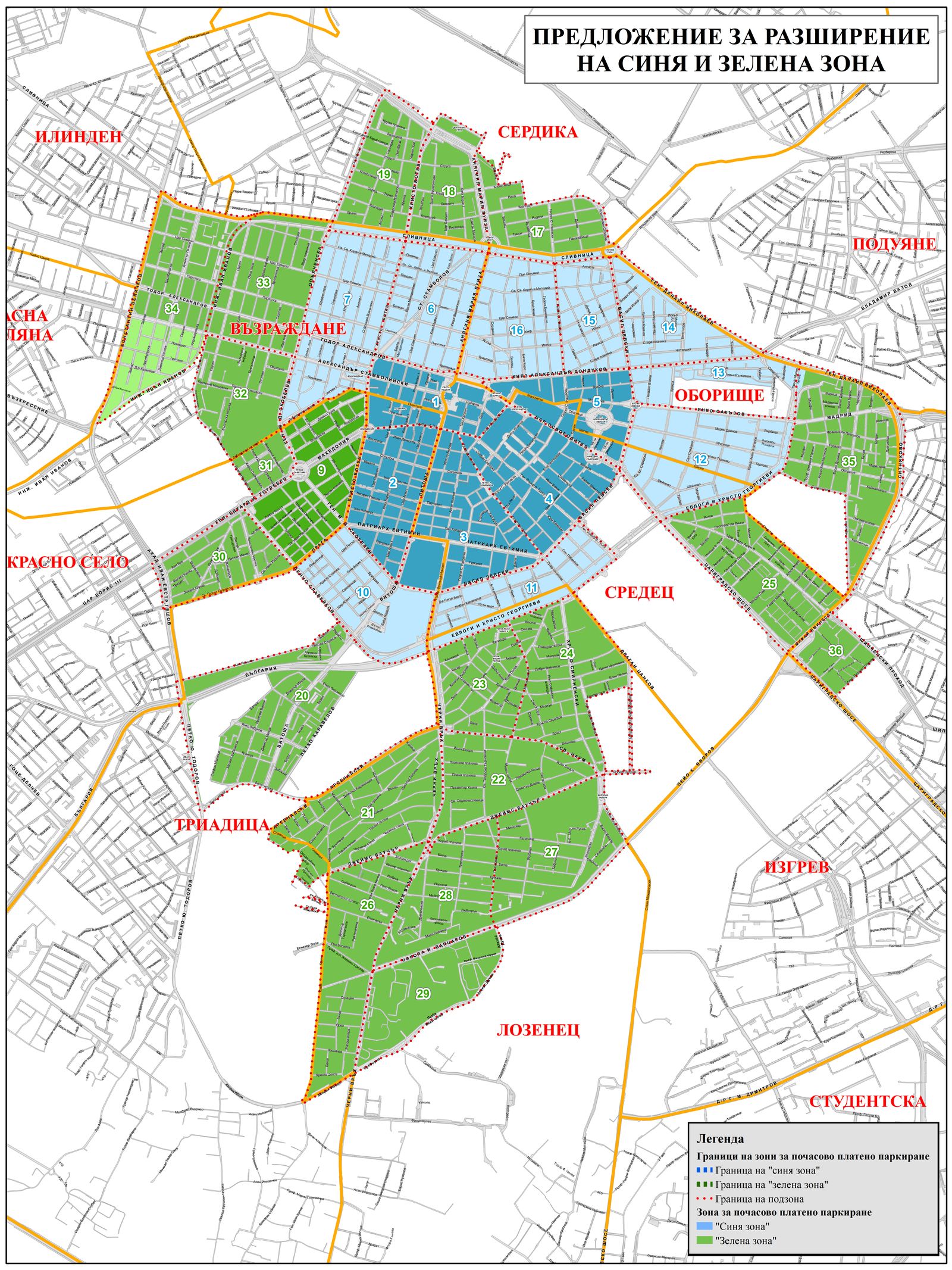 Всъщност общинските съветници предлагат част от зелената зона в районите “Оборище”, “Възраждане” и “Средец” бъде превърната в синя. Така реално по-евтината зелена зона ще намалее с над 7000 места, но ще продължи да се разширява в район “Възраждане”, където в ж. к. Зона Б-19 ще се разкрият 550 места.