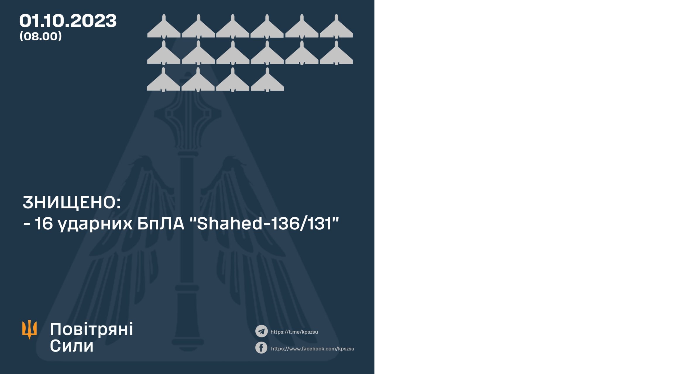 В същото време украинските военновъздушни сили съобщиха, че през нощта руските войски са атакували цели в страната с около 30 ударни безпилотни самолети "Шахед-131/136", от които украинската ПВО е успяла да свали 16, предаде агенция УНИАН.